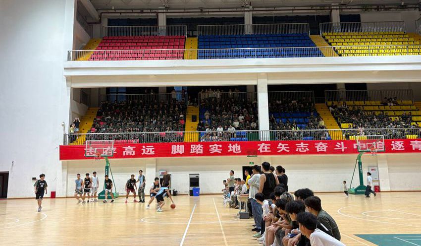 这场备受瞩目的赛事自启动便成为校园焦点,学校领导和老师们高度重视,倾力支持, 学院领导兼一营教导员李博同志,全程参与指导,化身最坚定的“场边教练”,指导球队,队员的每一次精准传球、每一次果敢上篮,吸引场下的同学们山呼海啸般的呐喊助威,将赛场化为激情与信念的海洋。无论领先或落后,场上队员无不激情不退,热情不减,拼搏进分。