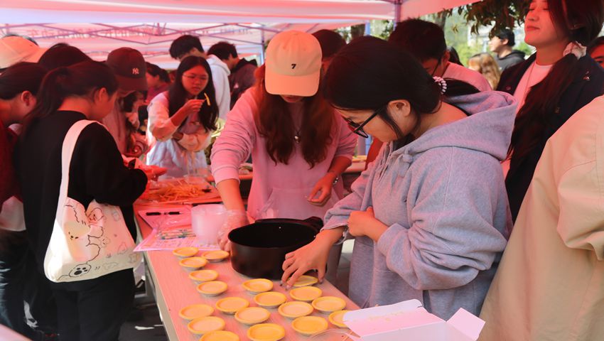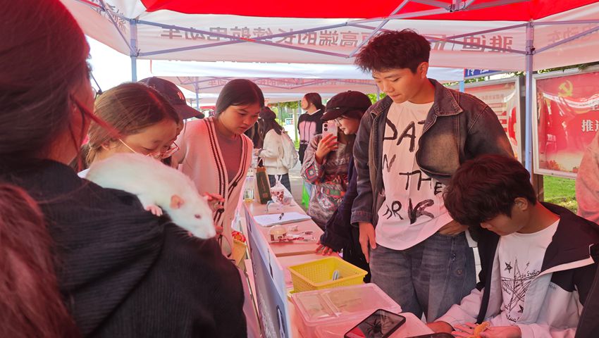 活动现场人头攒动,气氛热烈,各社团展位整齐排列,社团成员们各展其能,解答新生疑问,介绍社团亮点。书法社展区挂满写有诗文的宣纸,楷书端庄大气、行书飘逸灵动,墨香伴着微风散开,宠物社的展区里,仓鼠在笼子里探头张望,蜥蜴一动不动趴在饲养箱中,好奇的同学在社员指导下轻轻触摸;另一侧展台上,舞蹈、武术、话剧、歌唱等才艺轮番上演,赢得阵阵掌声,美食社摊位前更是排起小长队,社员现场炸薯条、烤蛋挞,一旁的火锅咕嘟咕嘟冒着热气,品尝美食的同学边吃边赞,脸上满是幸福感。同学们兴致勃勃地穿梭于各展位之间,在了解各个社团情况后报名心仪的社团。