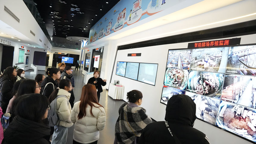 首先,同学们来到国农(重庆)生猪大数据产业发展有限公司,观摩中心大屏幕上实时跳动的产业数据,这里的“数智养猪”模式刷新了大家对传统畜牧业的认知,真切感受到数字技术对传统养猪业的重塑。