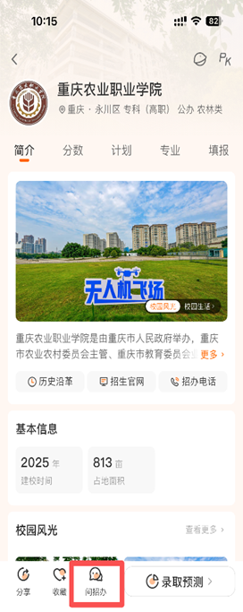 问答示例:当你问“我是重庆考生,今年考了400分,想报你们学校能被录取吗”时,系统不仅能通过DeepSeek大模型技术精准识别你的咨询意图是:省份、分数、录取分数,还会结合历年录取数据,为你提供更有参考性的回复!