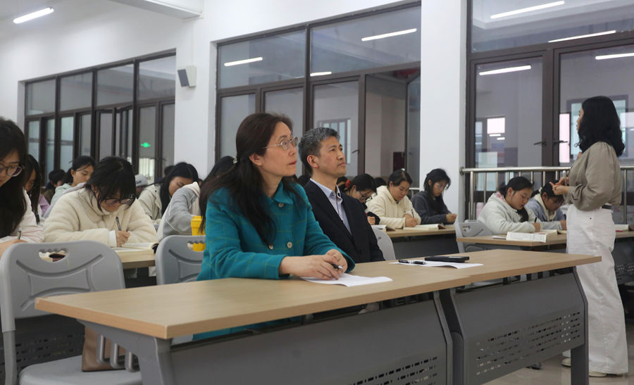 祝国超院长首先来到教学楼,随机听取了我校马克思主义学院青年教师张奉老师讲授的《习近平新时代中国特色社会主义思想概论》课程中“中国式现代化的中国特色”专题,我校马克思主义学院负责人伍能英及教师代表全程参与观摩交流。