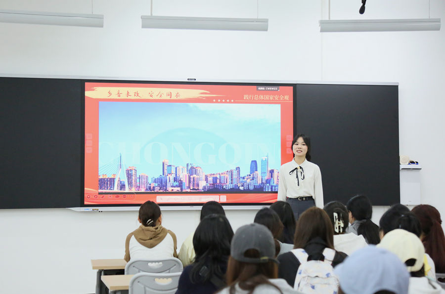 贺婉婷同学以《乡音未改,安全同在》为题,从重庆方言的文化温情切入,到方言在抗战时期的加密战略作用,再到各地方言特点。她呼吁青年应在推广普通话的同时,珍视、传承方言文化,以坚定的文化自信构筑起抵御文化入侵的精神防线。