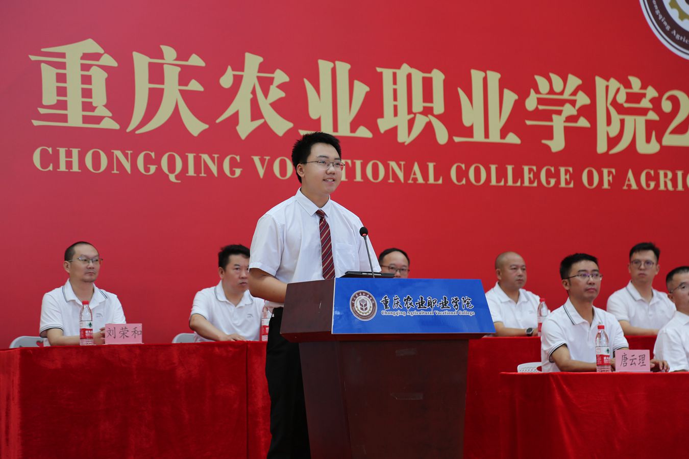 教师代表康雅涵老师上台发言,她以质朴真挚的话语,向新生们分享育人初心,传递专业学习的方法与态度,鼓励同学们在农职院的校园里扎根知识土壤,涵养强农情怀,用勤奋与热爱书写成长篇章。来自现代农业技术学院的新生代表肖智豪同学随后发言,他代表全体新生表达了对大学生活的憧憬,承诺将以昂扬姿态投入学习,传承农科学子的责任与担当,未来为农业发展贡献青春力量。