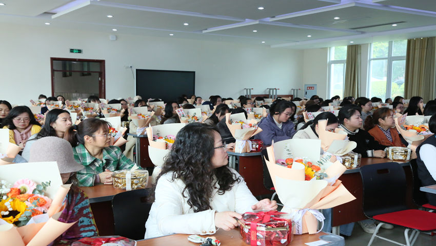 为庆祝第 116 个 “三八” 国际妇女节,凝聚巾帼力量、传递组织温暖,3 月 5 日下午,学校在水体会议室举行了2026 年 “三八” 妇女节庆祝活动。学校领导出席,与全体女教职工欢聚一堂、共庆佳节。
