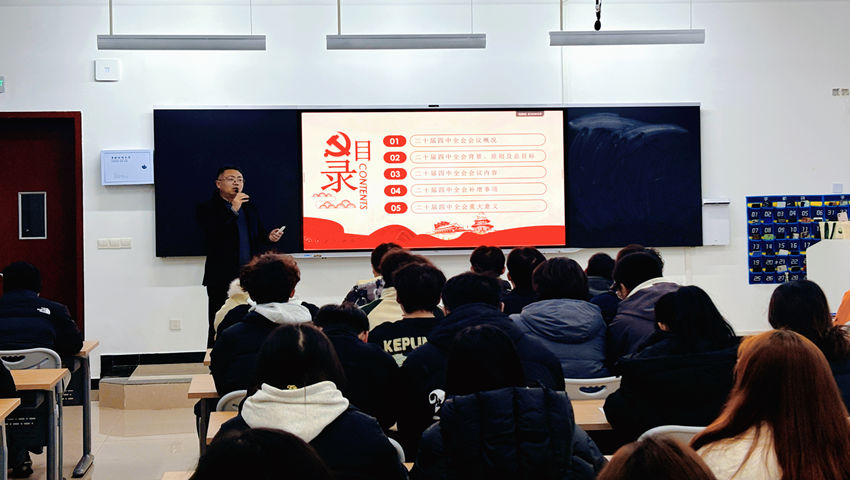为深入学习贯彻党的二十届四中全会精神,推动思想政治教育走深走实。12月16日、19日,学校领导陈长法走上讲台,为畜牧兽医学院和现代农业技术学院的学生讲授题为“深入学习贯彻党的二十届四中全会精神,在乡村振兴伟业中书写青春华章”的专题思政课,与我校青年学子共话时代使命、共绘成长蓝图。课上,学校领导陈长法以党的二十届四中全会精神为主线,系统回顾了我国“十四五”时期取得的非凡成就,重点解读了“十五五”时